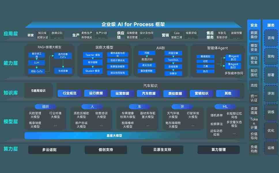 端到端的一站式AI工作空间深度融合了从企业战略规划到日常经营的全流程业务板块,,,,定向解决车企内部领域多、、、、部门多、、、、链条长、、场景碎片化等难题,,,,支持车企快速构建以AI为核心的生产力写作体系,,,,实现任务执行与AI能力的无缝集成与交互